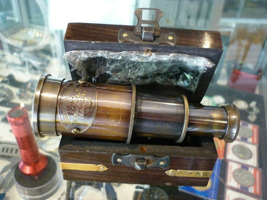 REPLICA VICTORIAN MARINE TELESCOPE BRASS / NAUTICAL IN WOODEN BOX